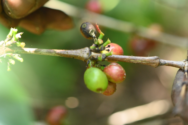 生命力が強く、さび病や害虫に耐性があり、カップ品質も高い一方、実の付きが少なく収量が低いのが欠点です。