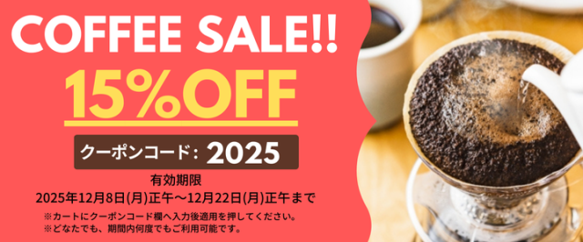【年に一度!!】コーヒー豆15%オフのクーポンコード配布